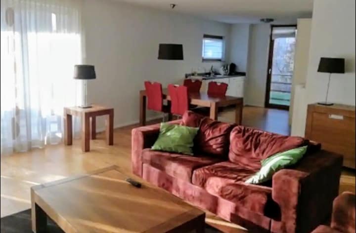 Zeer mooi groot appartement met twee slaapkamers. Heerlijke locatie om te skiën in de winter of te zwemmen in het meer in de zomer. Het appartement ligt op 5 min lopen van de skilift. Het appartement heeft mooi uitzicht op het meer, de haven en bergen. Al met al een unieke plek op het park en in Zwitserland! Linnengoed en handdoeken zijn inclusief! Kinderbedje en -stoel zijn aanwezig. Ik verhuur mijn eigen appartement zelf en ben nergens bij aangesloten.