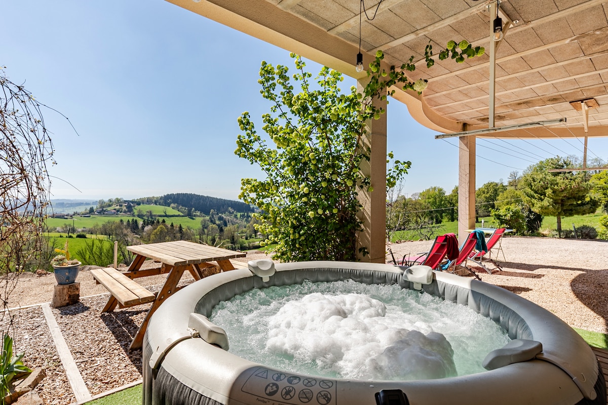 Dođite i napunite baterije u ovoj prelepoj drvenoj planinskoj kući sa terasom od 35 m2 sa hidromasažnom kadom i neverovatnim pogledom na okolnu prirodu. Manje od 4 km nakon izlaza sa autoputa Les Salles (42), Le Chalet se nalazi između istorijskog sela Cervičres i sela Noirétable sa svojim Casino de jeux, njegovim vodenim tijelom i svim lokalnim prodavnicama. Pozivam vas da pratite Chalet Yolo @chaletyolo
