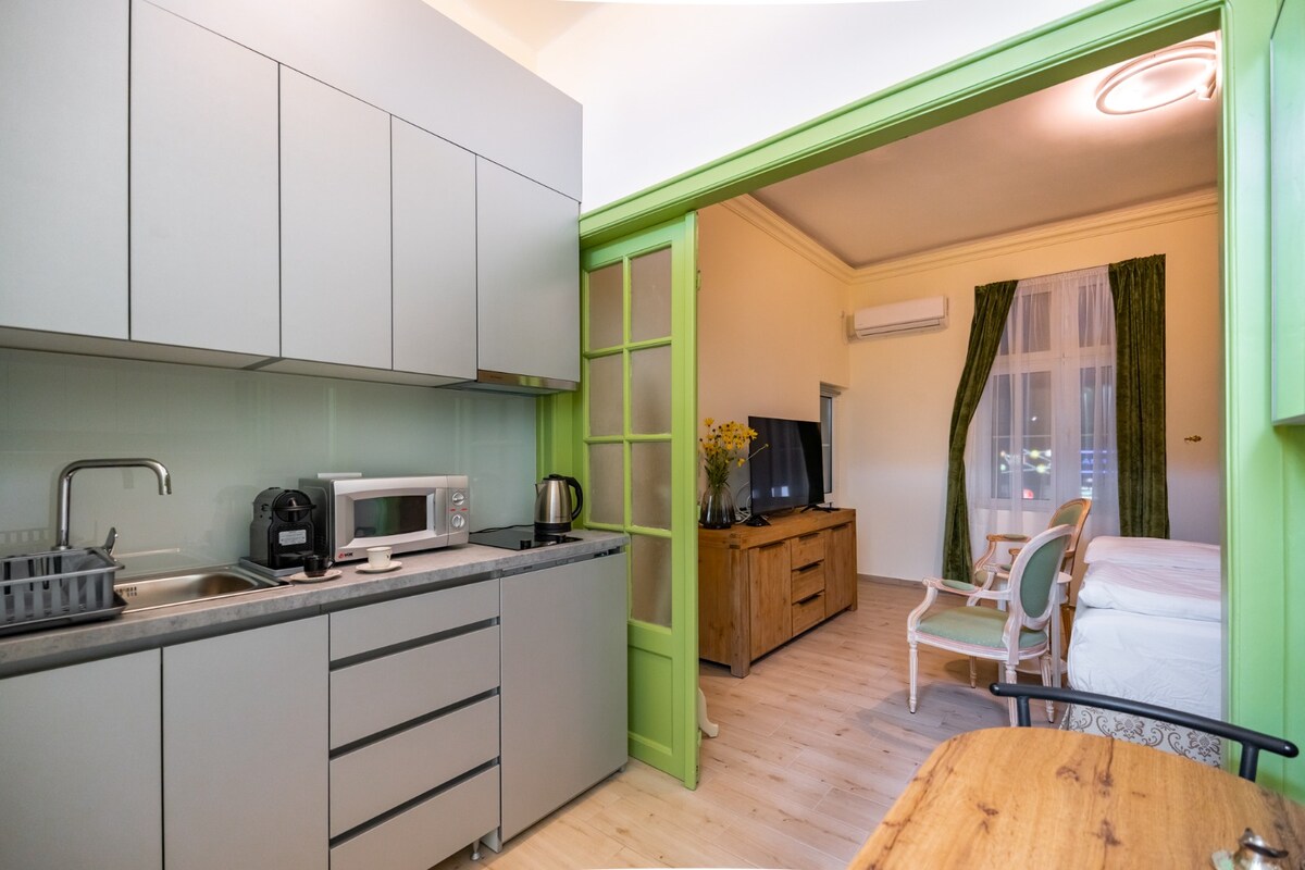Stan je u potpunosti renoviran pre nekoliko meseci i sve je potpuno novo. U spavaćoj sobi se nalazi veliki udoban bračni krevet i jedan veliki kauč u dnevnoj sobi. Sve u diskretnom led svetla. U kuhinji možete uživati u modernom šporetu sa ravnim ekranom, rernoj, frižideru sa zamrzivačem, mašini za sudove i mašini za pranje veša i velikom šanku. Kupatilo je zastakljeno mermernom keramikom, veoma je kompaktno i čisto. Kupatilo je opremljeno fenom za kosu, peškirima, higijenskim setovima.