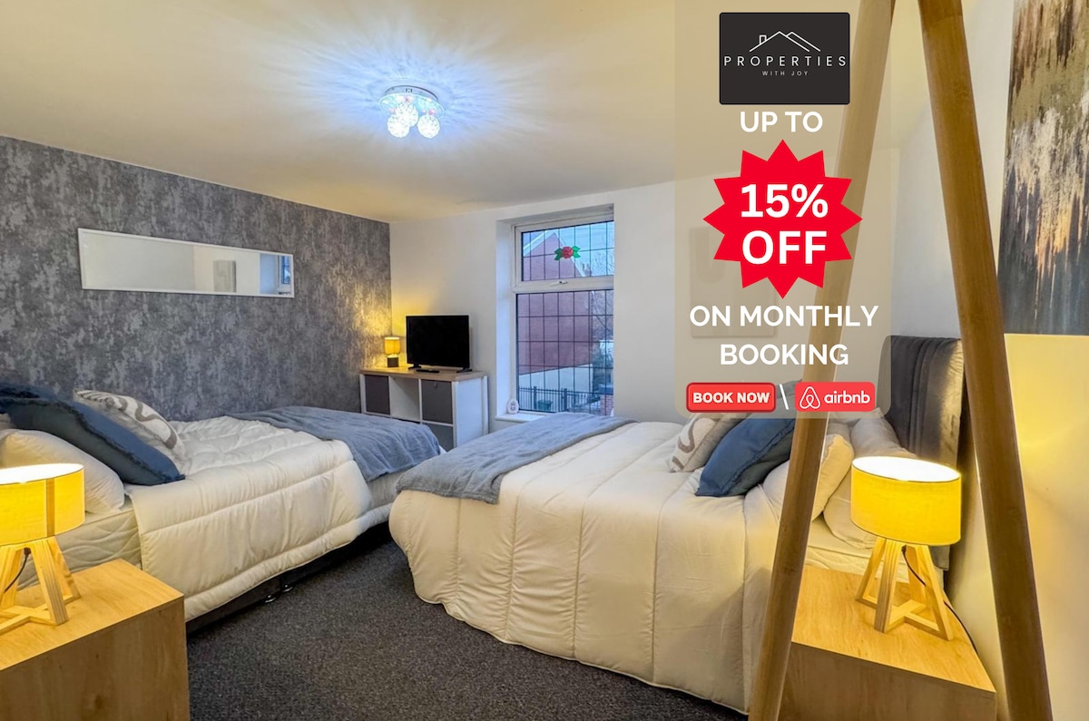 🌐Properties With Joy Short Lets & Serviced Accommodation Ashton 🌐 Weekly Stay: Special Offer! 7 Nights ➞ Enjoy 10% Off Stay Longer ➞ Save More Perfect for a week of relaxation and fun! ➞ Free WiFi ➞ Free On Street Parking ➞ Sleeps Up to 7 Guests Book your weeklong retreat today! Ideal for: ➞ Contractors Accommodation ➞ International Family Relocation ➞ Extended Stays ➞ Business Stays ➞ Event Accommodations ➞ Relocation & Insurance Stays