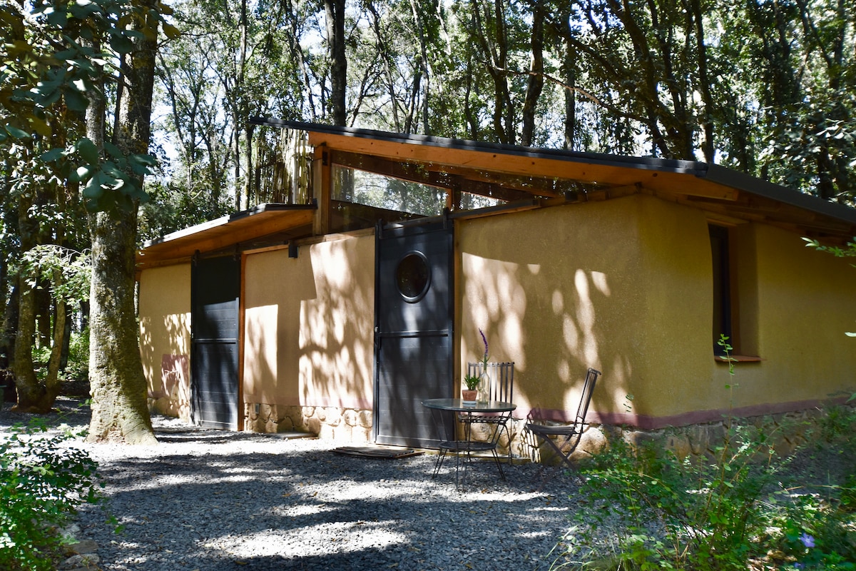 Uživajte u iskustvu spavanja u eko-komu u permakulturnom centru. Koristićete kišnicu za tuširanje, suvo kupatilo bez vode i ne zagađuje, konstrukcija sa ekološkim materijalima i prijatan dizajn za uživanje u nezaboravnom vikendu. Razgledajte objekte i posjetite našu sobu za meditaciju, obiđite naš agroekološki voćnjak, uživajte u pogledu na našu terasu sa visećim ležaljkama ili popijte čašu vina pored ognjišta u večernjim satima.