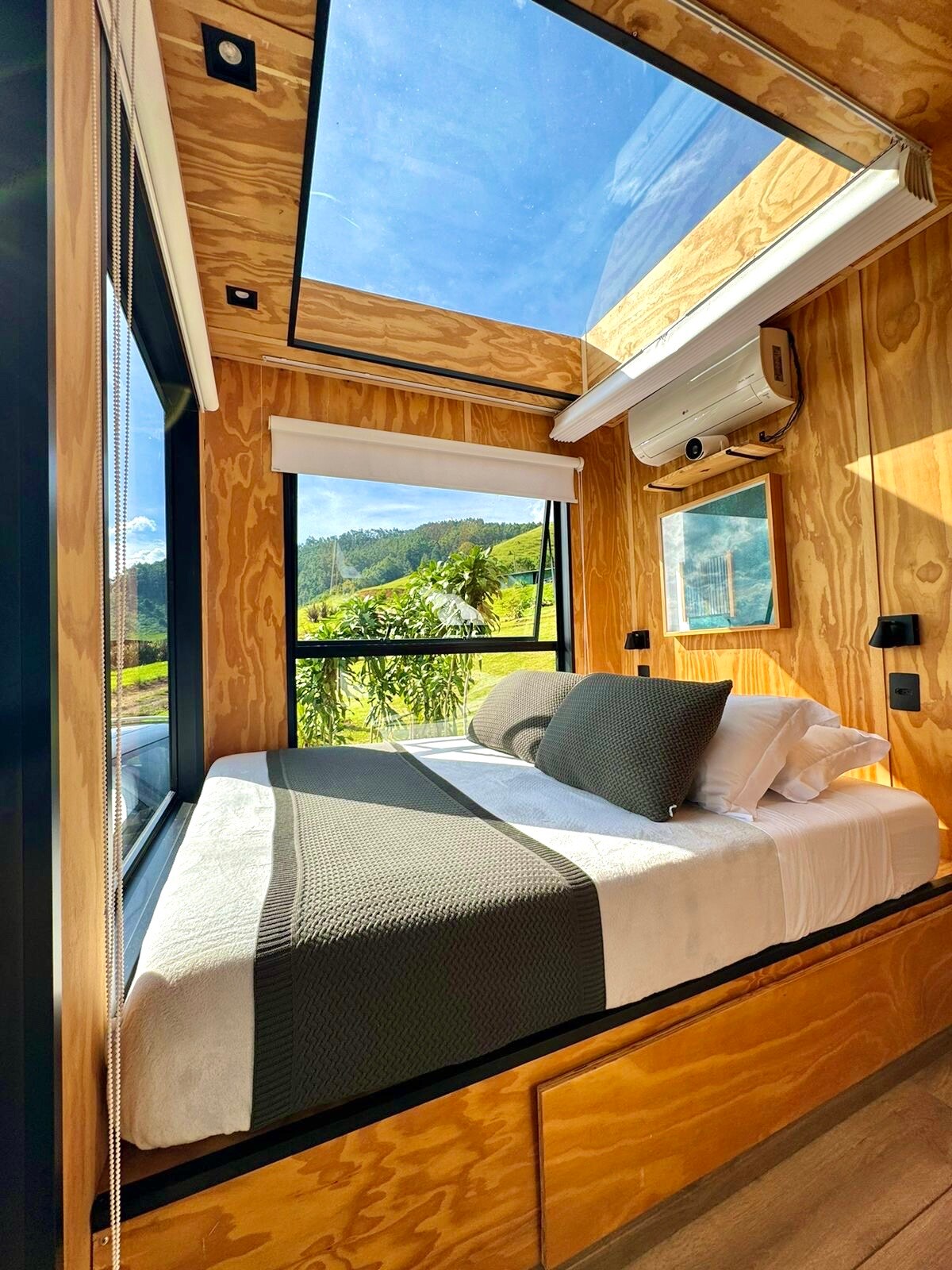Staklena kabina objedinjuje savremeni minimalizam i udobnost u ekskluzivnom smeštaju. Sa neverovatnim panoramskim pogledom, nudi prirodno svetlo tokom dana i zvezdano nebo noću. Ima bračni krevet, 50-inčni smart TV, kompletnu kuhinju i đakuzi strateški pozicioniran da uživate u pejzažu. Savršeno za parove koji traže romantični odmor ili za one koji žele da se isključe iz rutine i ponovo povežu sa prirodom. Nezaboravan odmor za jedinstvene trenutke. @cabanadaarvore