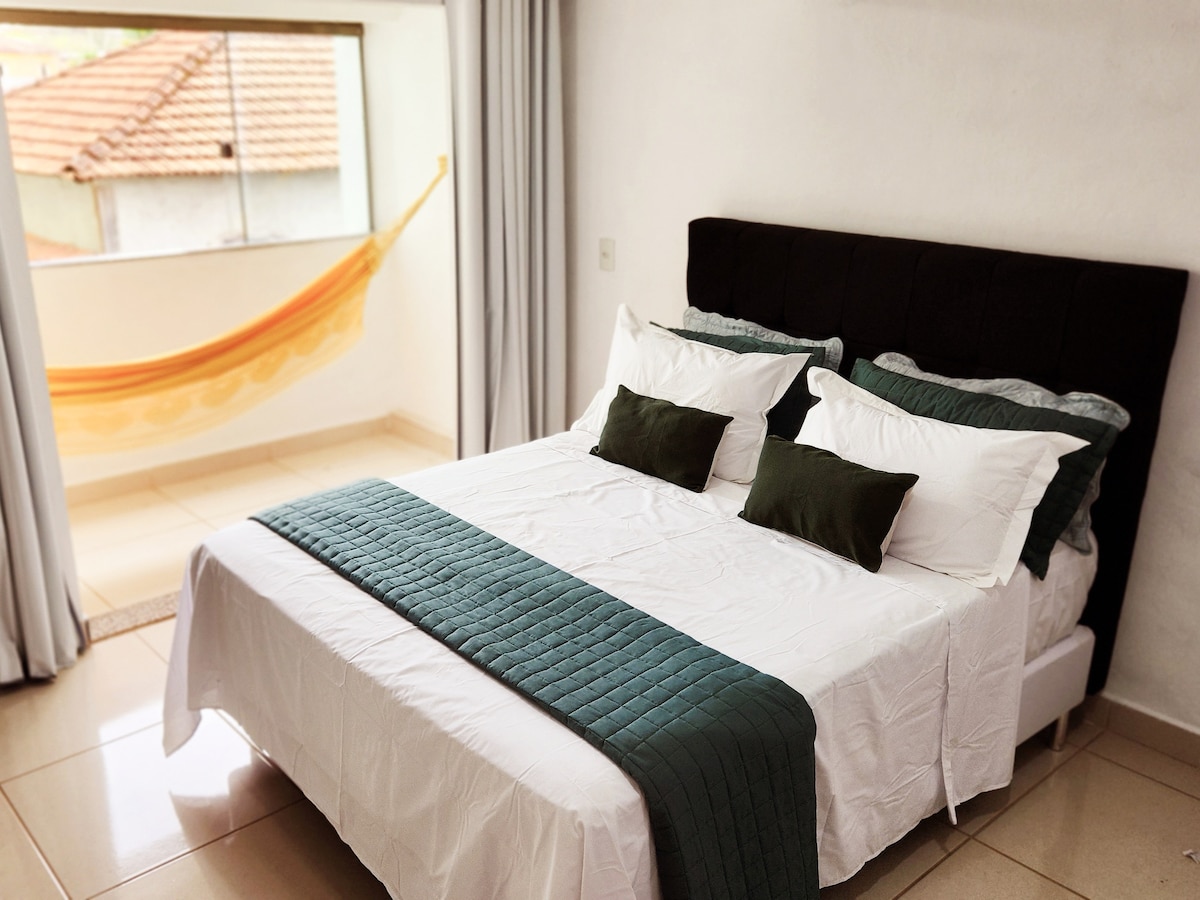 🌿Dobro došli u našu malu kuću u centru 9 minuta hoda do Parque das Águas i šetališta ✨ Nalazimo se u ulici XV. novembra u blizini: • Pekare Alvarez, San Remo • Restorani • Barovi • Akademije • Apoteke • Gomes Supermarket 🔺Pristup sobi jednim stepenicama 🐾 Vaš mali kućni ljubimac je dobrodošao | naknada: 50,00 BRL ✔️ Posteljina, peškiri i ćebad od mikrofibera Veće ️ grupe, ponesite dodatne navlake 🏘️ Hodnik sa drugim kućama 🚘 Nemamo garažu 📍 Parking u blizini