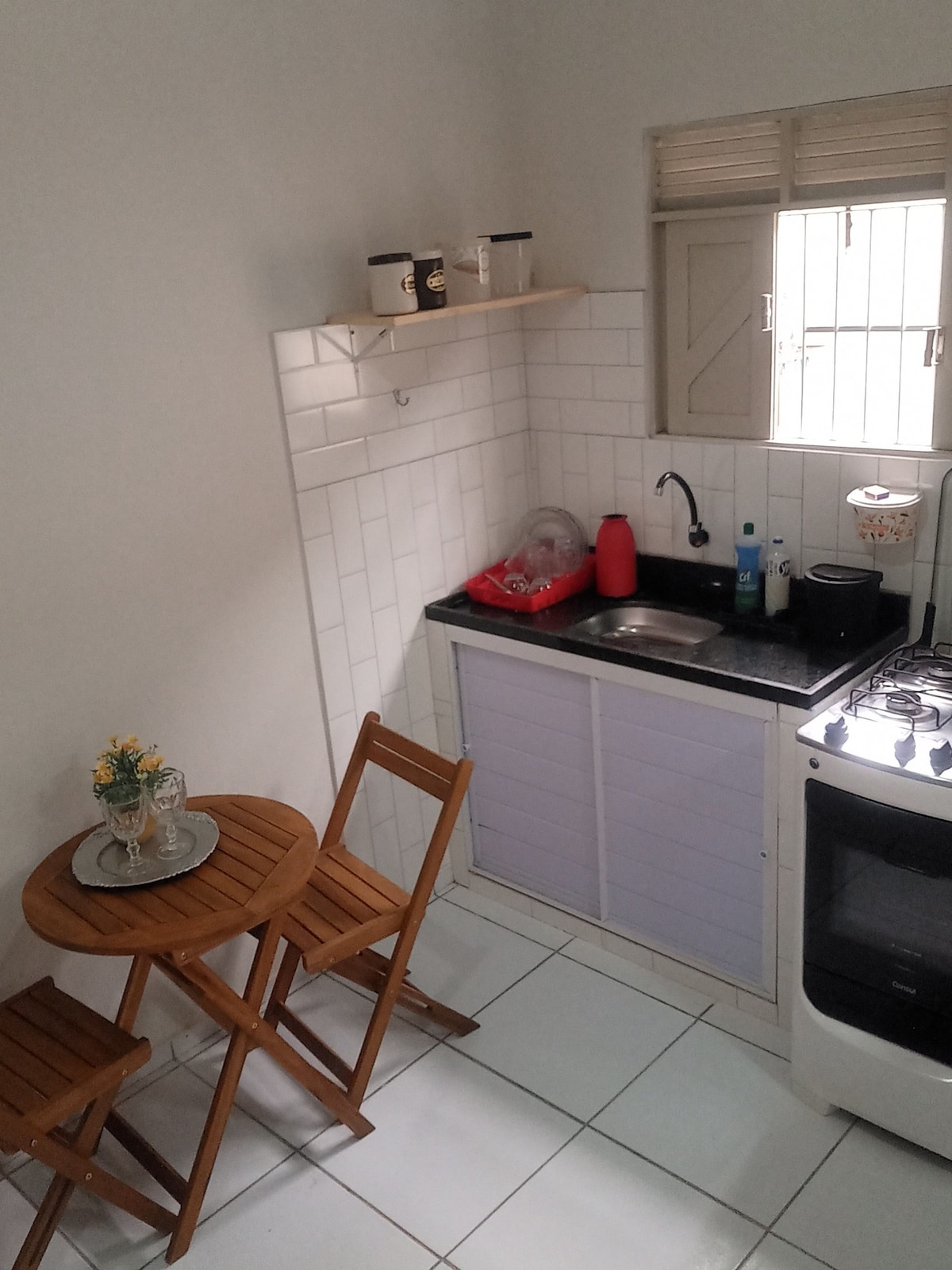 SUÍTE COM COZINHA - DE VENTTO EM POPA Localizado na PONTA DE SANTO CRISTO em São Miguel do Gostoso. Suíte com cozinha para casal, cama Queen, ar condicionado, secador de cabelo, Smart TV, sanduicheira, cafeteira, frigobar, cuscuzeira, liquidificador, chaleira elétrica, micro-ondas, fogão elétrico 2 bocas, panelas e talheres , banho quente, wifi, roupa de cama e banho completas. Todo conforto combinado com a tranquilidade merecida. Faça sua reserva e venha conferir esse paraíso particular!