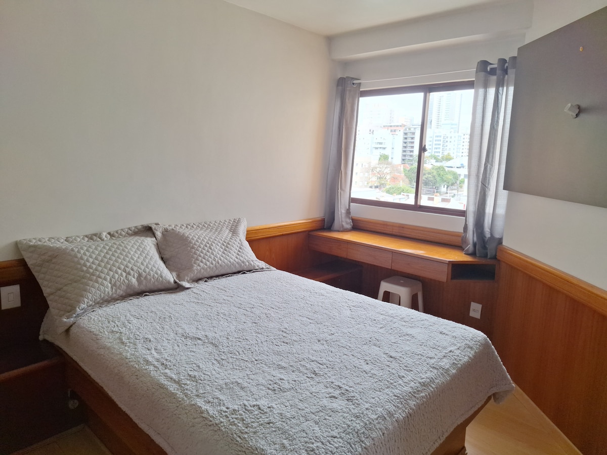 Lindo flat com mobília sob medida. Possui ar condicionado quente e frio, tv na sala com sky hd com futebol,, filmes ,etc (pacote quase completo) e tb tv no quarto, microondas, Airfryer, churrasqueira. Décimo andar. Prédio com lavanderia (paga), academia, salão de festas e piscina na cobertura (fechada de 15/9 a 10/11). Na melhor localização, onde tudo acontece, junto à Praça XV e a 300m da Prainha. Todos são bem-vindos.