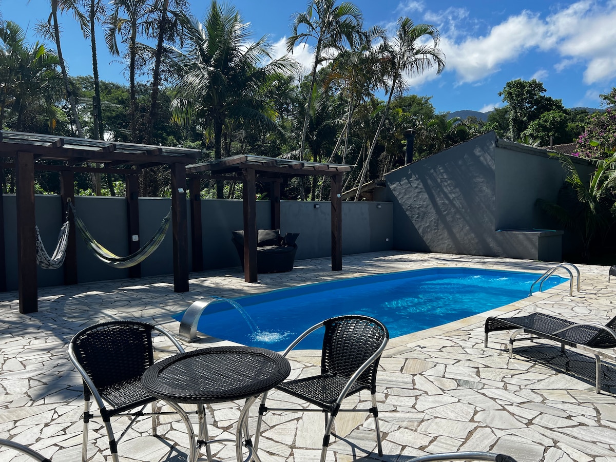 Mi smo kuća/pansion sa doručkom i veoma smo blizu plaže Guaraú. Možemo da iznajmimo celu kuću ili zaseban apartman. Apartmani za 1 ili 2 osobe i prostor za najviše 7 osoba. Domaćini na licu mesta. Kuhinja je zajednička svima Frižider je ekskluzivan za goste. Posteljinu za krevet i kupatilo treba ponijeti. Porodična atmosfera. Lepa bašta.