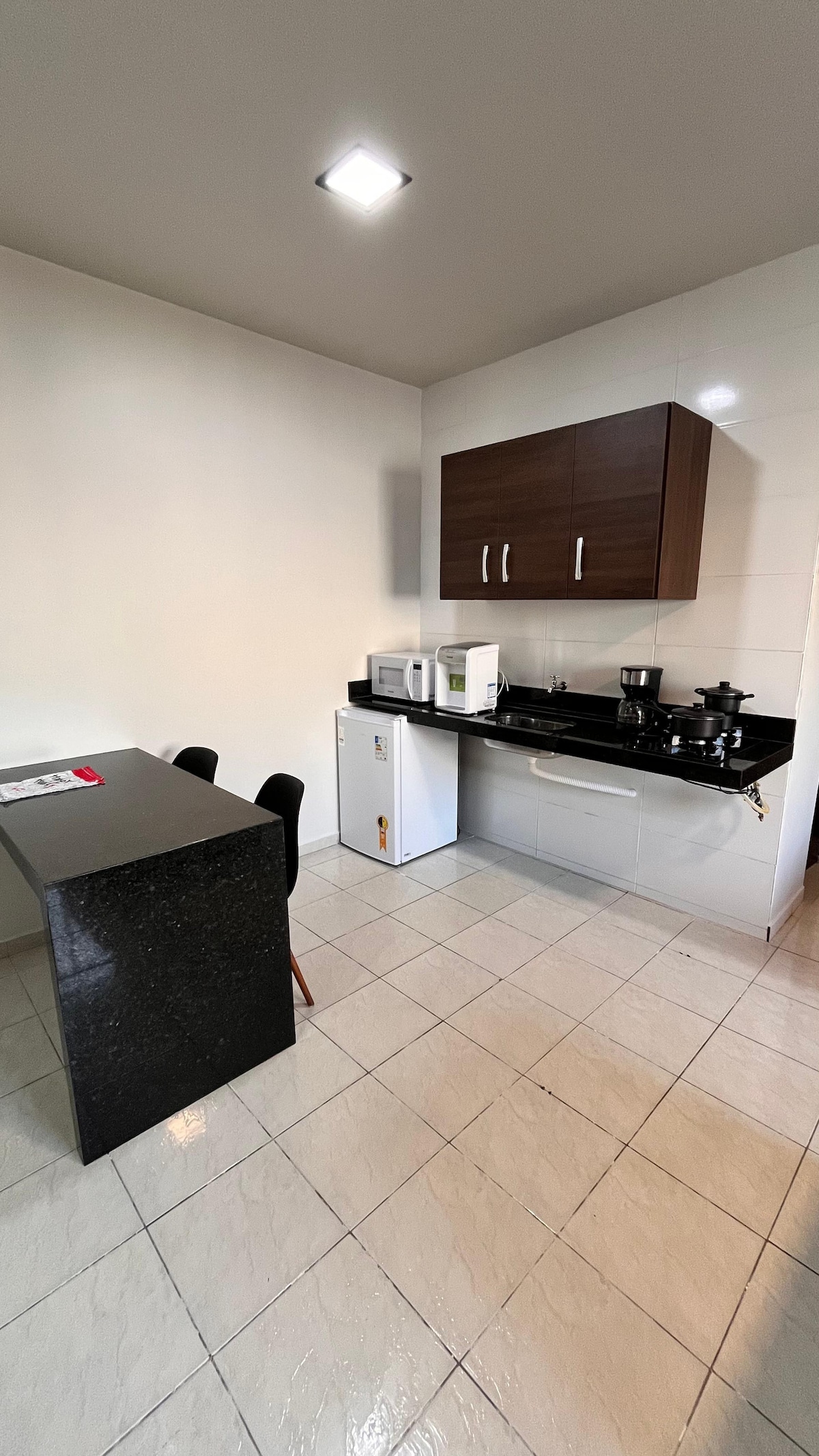Studio moderno e aconchegante no bairro Luzia, perfeito para relaxar com conforto e estilo. Ambiente 100% climatizado, com iluminação em LED que cria uma atmosfera acolhedora. Conta com TV smart com wi-fi de alta velocidade, cozinha equipada, fogão de indução de 1 boca, filtro de água, frigobar, sanduicheira, cafeteira, utensílios de cozinha, cabideiro com cabides, cama confortável, banheiro com chuveiro eletrônico e iluminação LED. Design elegante, ideal para viajantes à trabalho ou lazer.
