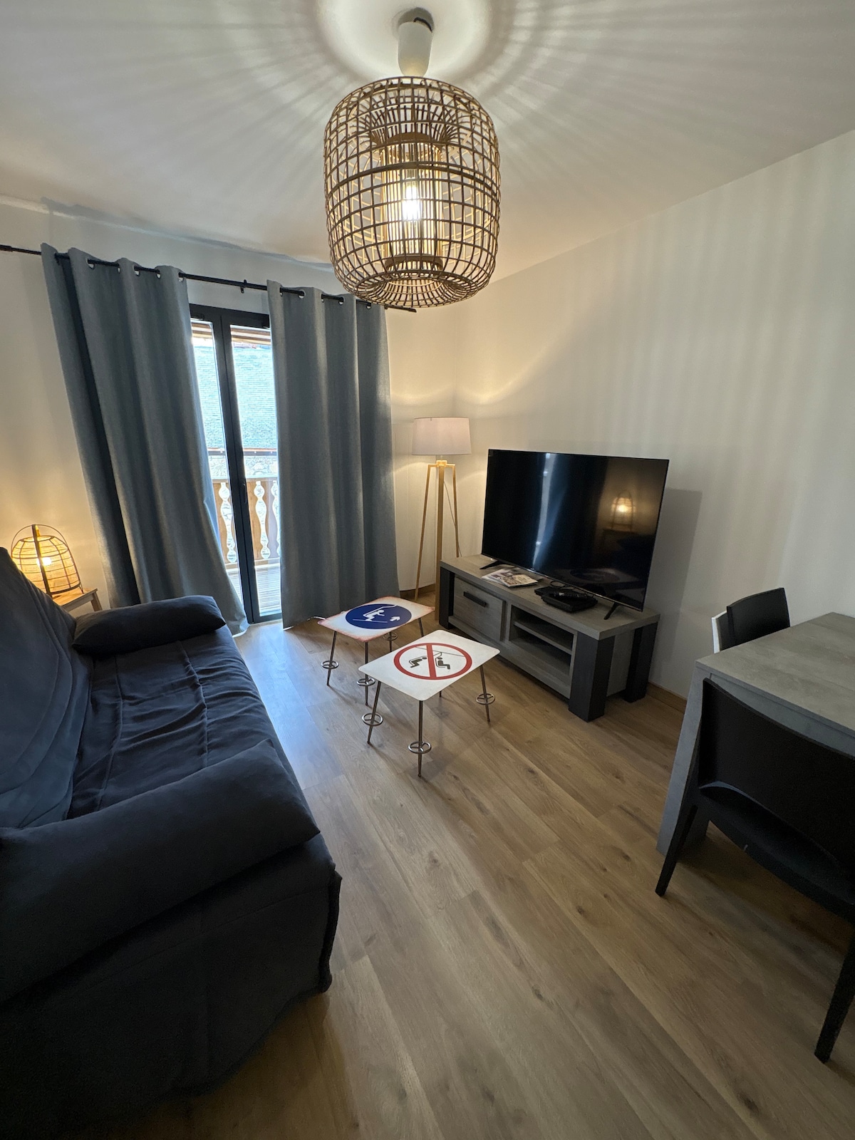 Renovirani studio od 26 m2,nalazi se u podnožju padina, sa balkonom okrenutim prema jugu i zadivljujućim pogledom na padine. Imate privatnu ostavu koja se nalazi na padinama (-4), odmah pored liftova. Tokom zimskih školskih praznika, iznajmljivanje je od subote do subote. Smještaj za 4/5 osoba koji se nalazi na 3. spratu: Prostor za spavanje u dnevnoj sobi, mogućnost da se izolujete zavjesom. Kupatilo sa WC šoljom i velikim dvostrukim ormarom (police i ormar) Zasebna kuhinja
