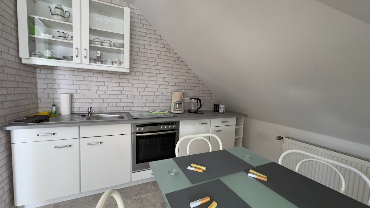 Udoban stan u Haren-Emmelnu sa 3 spavaće sobe, potpuno opremljenom kuhinjom, modernim kupatilom i svijetlim dnevnim boravkom i trpezarijom. Krovna terasa vas poziva da se opustite. Idealno za porodicu, maksimalno 5 ppl. Mirna lokacija u blizini Dankernsija, dvorca Danken, Emslandringa i parka prirode Hümmling. Kupovina i restorani u blizini. Savršeno za rekreaciju, aktivan odmor i izlete. U blizini holandske granice (oko 15 minuta vožnje) Imajte na umu da ne prihvatam nikakve instalatere!