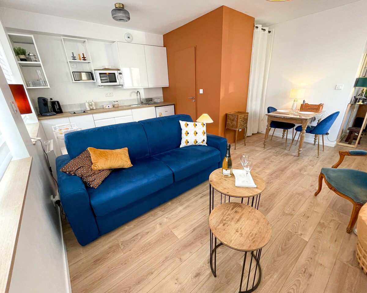 Bienvenue au Studio Le Plumard Bleu. Idéal pour les travailleurs ou les couples, parking rue gratuit, à 3min de l'autoroute, 10min à pied de la gare, bus gratuit à 50m vous emmène à la plage (C3). Quartier calme, parfait pour télétravailler (wifi). Studio lumineux (avec volets) situé dans un bâtiment de la reconstruction entièrement rénové (thermique et fonctionnel) et classé 2 étoiles. Il se distingue par sa conception alliant espaces sur mesures et une décoration élégante et pétillante.