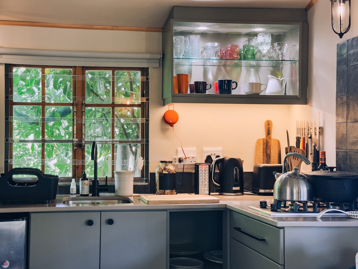 Jedinica za samostalno snabdevanje za 4 gosta sa rezervnom SNAGOM, Amour se nalazi u dolini Banhoek na farmi, 7 km od Stelenboša i okružen je planinama. Idealno za parove sa decom, solo avanturiste i poslovne putnike. Morate da rezervišete Amour (leva odeljak) koja prima 2 para ili porodicu sa decom koja je potpuno privatna. Wi-Fi sa TV strimovanjem . Obe sobe imaju radni sto. Udoban salon sa kaminom u prizemlju. Dođite i doživite luksuzan život na selu.