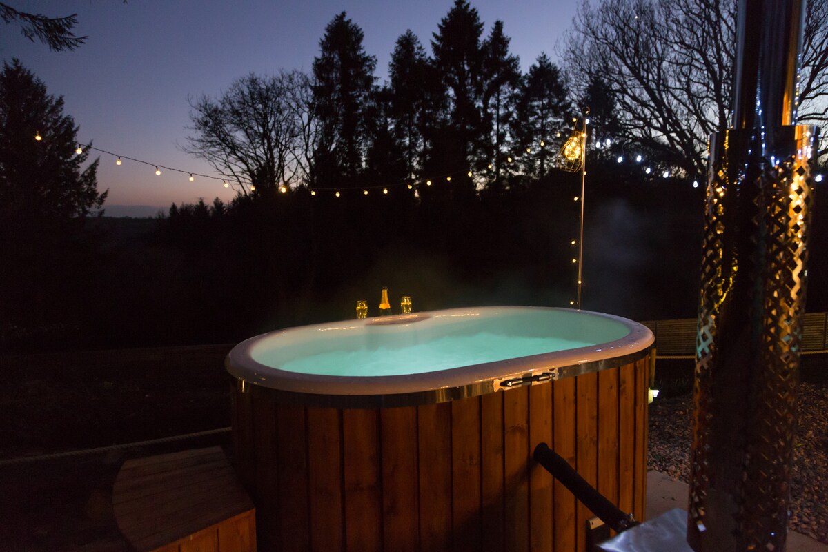 Ova elegantna, udobna i romantična brvnara nalazi se na porodičnom privatnom imanju smeštenom u srcu brežuljaka Blekdaun Hils AONB na granici Somerset i Devona. Naša brvnara je savršena za parove koji žele da se odmore i opuste među najboljim u britanskom selu. Ima vašu privatnu hidromasažnu kadu s pogledom na predivan pogled na šumu. Bez obzira na to da li gledate izlazak sunca ili gledate u zvezde, nikada nećete želeti da napustite ovo utočište u prirodi.