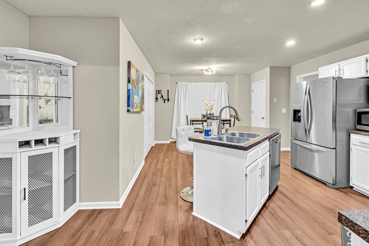NOVE NOVOSTI U avgustu 2024. godine!!! Dobro došli u naš prostrani dom sa 3 kreveta i 2,5 kupatila sa barom u sunčanoj sobi i vazdušnim hokejem/bilijarskim stolom. Samo 5 minuta od autoputa, ovo udobno utočište nudi praktičnost i zabavu. Opustite se u elegantnim dnevnim boravcima, uživajte u obrocima u potpuno opremljenoj kuhinji i opustite se u klimatizovanom baru u sobi za sunčanje. Izazovite prijatelje na vazdušni hokej ili uživanje u mirnom dvorištu. Lako istražite lokalne atrakcije sa ove glavne lokacije. Rezervišite odmah za nezaboravan boravak!