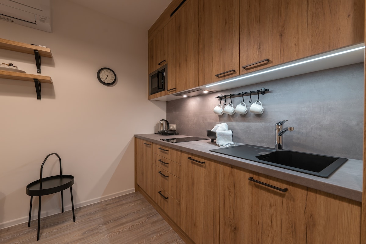 Our place with charming terrace and superior location was renovated in April-2018. Its only 150m from the lake and just 50m from bus station. It is a studio for a family or 4 adults with kitchen, bathroom and terrace. Tourist office and restaurants are located next to our building. Check out our other listings: https://www.airbnb.com/users/22704697/listings?user_id=22704697&s=50