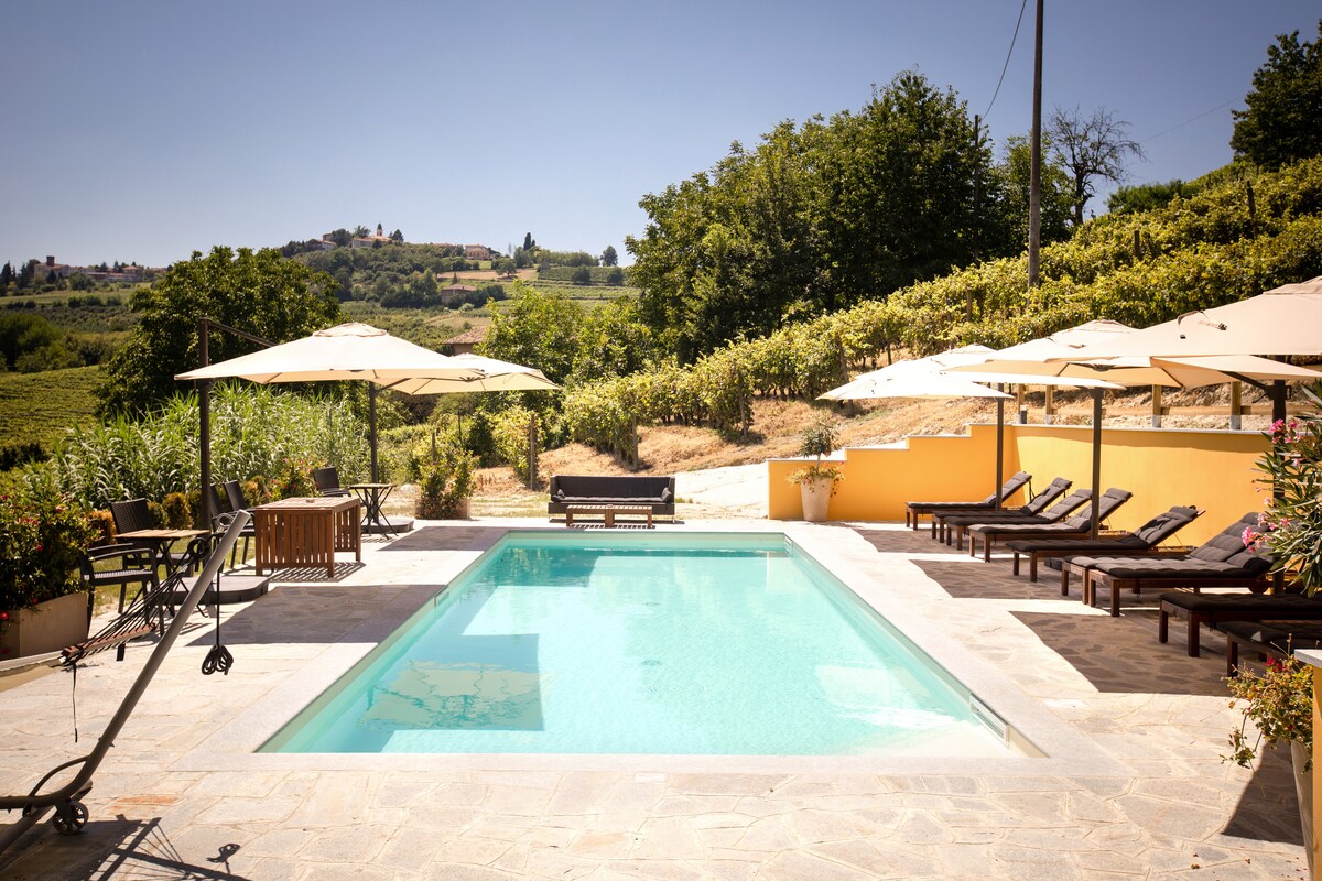 Regija Piemont je jedna od prelepih tajni Italije. Poznata po vinu, tartufu, hrani i pejzažu, naša kuća se nalazi usred najpoznatijih vinograda pod zaštitom Uneska na putu Maggiora, jednom od najslikovitijih puteva. Novouređeni stan U POTKROVLJU sa nezavisnim ulazom, prostranom terasom, velikim dnevnim boravkom, potpuno opremljenom kuhinjom, spavaćom sobom i kupatilom i našim bazenom sa slanom vodom. Za 5 osoba. Punjač za električne automobile od 11 do 17 sati.