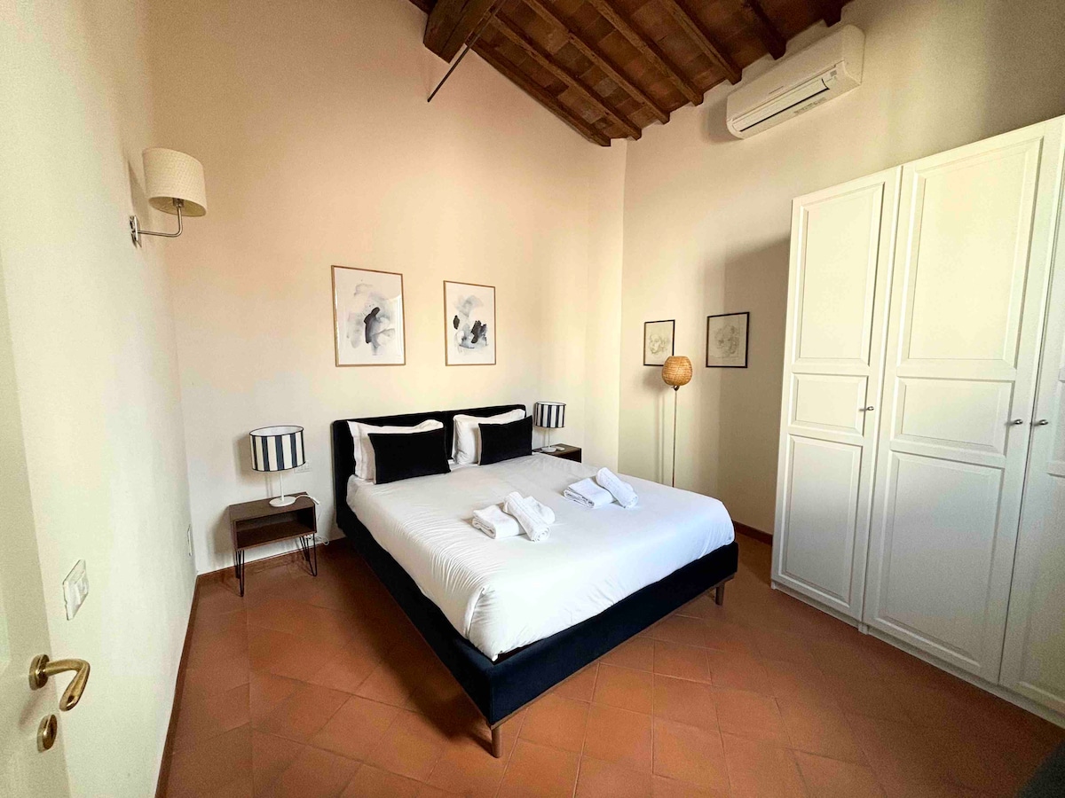 Tuscan Retreat: Design & Tradition ⚜️ Experience authenticity in this bright flat with exposed beams and original terracotta. Relax in the spacious living area or the detailed master bedroom. Unique Comforts: • Dual Baths: Modern black marble + rustic with tub. • Top Amenities: Full kitchen, AC, and ultra-fast Wi-Fi (2.5Gbps). A peaceful oasis in the heart of Florence. Book your authentic Florentine stay now!
