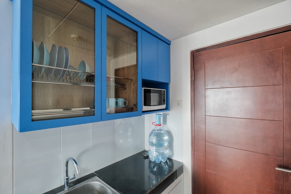 Izuzetno udoban i čist stan sa 2 sobe, ambijentom obale i dobrim pogledom. Strateški se nalazi jer se nalazi pored kapije Pasteur Toll, jedne od glavnih puteva u Bandungu. Postoji jedan bračni krevet, 1 krevet na sprat i 1 kauč na razvlačenje (kapacitet za 6 osoba) Imamo kompletne sadržaje kao što su: Smart TV, neograničen Wi-Fi, klima-uređaj, bojler, električni šporet, mikrotalasna pećnica, galonska voda za piće, mini kuhinja, fen za kosu, sto za peglanje, peškir (4 peškira) i još mnogo toga