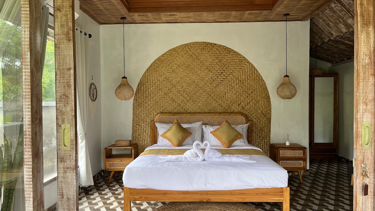 Bungalov u prozračnom i laganom stilu s pogledom na bujnu tropsku baštu. Nalazi se na samo nekoliko minuta od pijace Ubud. Pogledajte našu IG stranicu za više fotografija @mudaliving Smješteno u mirnom području udaljenom manje od 5 minuta vožnje skuterom od centra Ubuda, područje je poznato po brojnim luksuznim hotelima, kao i po buticima, spa centrima i restoranima. Prošećite lokalnim preporukama kao što su soba 4 Desert i Naughty Nuri 's ili budite avanturistički nastrojeni i isprobajte mnoge nezavisne male kafiće.