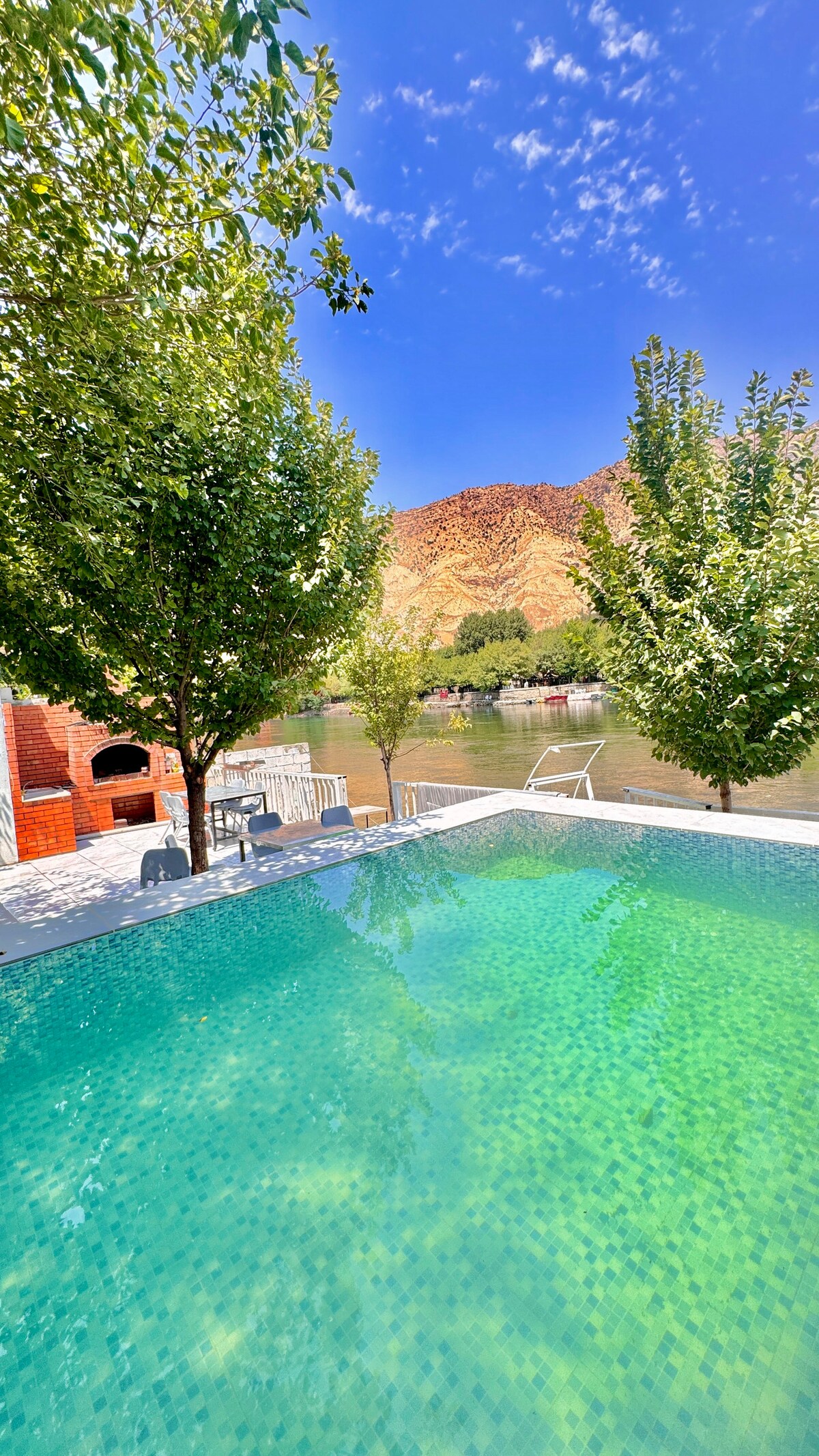 Modern riverside villa with private pool, garden, BBQ, and outdoor dining for 12. Peaceful, clean, and perfect for groups up to 12. Direct river access & stunning views. Note: blankets provided for 2 guests only—please bring your own if more. فيلا حديثة بجانب النهر مع مسبح، حديقة، شواء وطاولة خارجية لـ12 شخص. هادئة ونظيفة وتتسع لـ12 ضيف. إطلالة رائعة ودخول مباشر للنهر. ملاحظة: نوفر بطانيات لشخصين فقط، الرجاء إحضار بطانيات إضافية إذا كنتم أكثر.