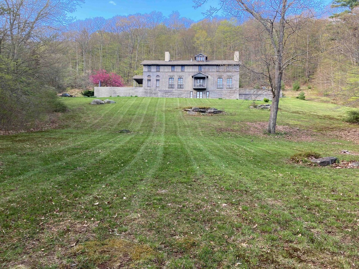 Catskill Park Manor House je luksuzni dom koji se nalazi na 131 hektara, a dizajnirao ga je poznati arhitekta Piter Pennojer za pisca Luja Aučinklosa (rođaka Žakija O). Predivan pogled na planine iz svake sobe, kamin, ognjište, igraonica, trpezarija za više od10 osoba, biblioteka, privatne pješačke staze. Lokalne atrakcije uključuju mušičarenje, vožnju kajakom i još mnogo toga. NAPOMENA** Rezervacije u junu: spoljašnjost će biti obojena tako da postoji mogućnost da fasada neće biti završena, ali nema ometanja vašeg boravka :)