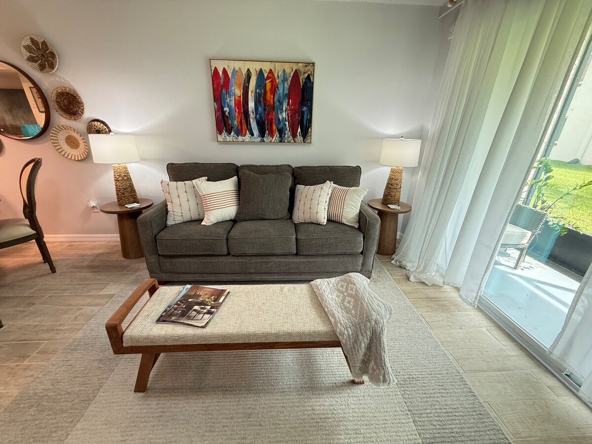 S pogledom na obalni plovni put pod svakim uglom, naš kondominijum je okruženje za svaku viziju Džimija Bafata. Prostrani smještaj za 6 osoba u našem potpuno novom, modernom smještaju s priobalnim stilom koji će vam pružiti samo opuštanje i bezbroj uspomena u ovom zadivljujućem smještaju na Floridi. Pristup plaži je udaljen 5 minuta hoda. Centar grada je 15 minuta vožnje. Ukrcajte se u svakodnevne rituale otkrivanja veličanstvenog zalaska sunca na Floridi. Dobro došli u Ultimate Intracoastal Living Experience.