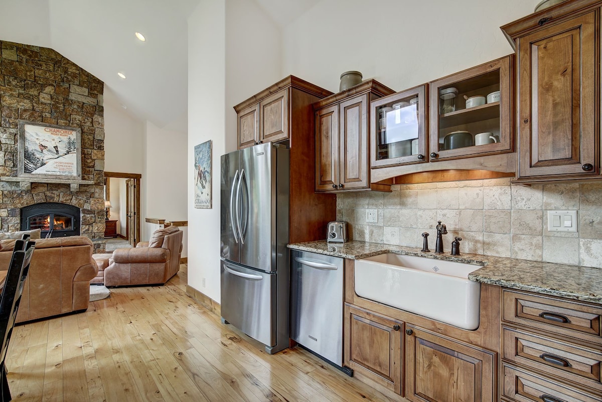 Ovaj 3BR 2 1/2BA ima otvoren raspored koji olakšava grupnu/porodičnu interakciju. Od dnevnog boravka, staklena vrata se otvaraju do terase sa hidromasažnom kadom. Od terase i dnevnog boravka, pogled na planine prevladava zimi, a visoki aspeni pružaju hlad ljeti. Glavni apartman se nalazi na stepenicama iznad dnevnog boravka, a dvije spavaće sobe se nalaze odmah ispod ulaznog nivoa. Zadnja terasa koja podržava hidromasažnu kadu nalazi se na glavnom spratu direktno ispred glavnog dnevnog boravka.