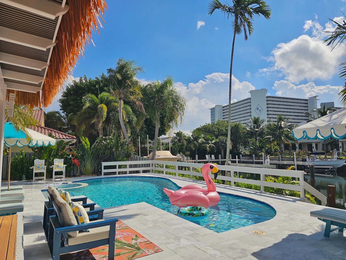 #1 BACHELOR / BACHELORETTE DESTINATION IN FORT LAUDERDALE !!! Idealno i za porodice:) Tiki Las Olas je luksuzni Air BNB vrijedan više miliona dolara na bulevaru Las Olas! Kuća (nije kuća u nizu) Tiki bar s pogledom na plavi bazen u laguni. Zid selfija sa mašinom. Zid za privatnost od dva metra sa bezbednom kapijom. Polinezijski bioskop sa vrhunskim sedištima. Prilagođeni Tiki bračni kreveti (6) u pozorišnoj sobi. Lift. Parna soba. Hidromasažna kada