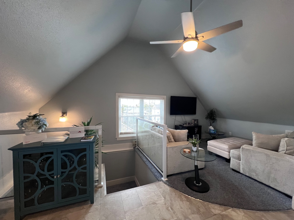 Uživajte u ovoj sveže restauriranoj istorijskoj zgradi u svom privatnom stanu sa 2 spavaće sobe. Uživajte na jutarnjem suncu uz kafu na vašem privatnom balkonu. Otvoreni raspored sa plafonima od 11 stopa, velikom kuhinjom i ostrvom u kuhinji, radnim površinama od belog kvarta, novim drvenim podovima i neverovatno udobnim krevetima poželeće vam dobrodošlicu u vaš dom. Pranje veša, WI-FI, 4K TV sa kablovskom televizijom i Netflix/Amazon, vinski frižider, pristup liftu i parking van ulice. Dozvola # TBES-BEJạ8