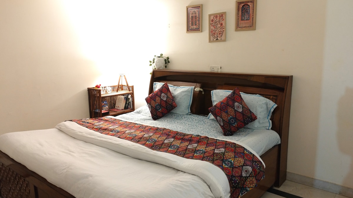 U „H je za dom” nudimo spektakularno osvijetljen privatnim apartmanom sa 3 spavaće sobe/3 kupatila sa elegantnim uređenjem i kompletnom uslugom u srcu Delhija. Nalazi se u ograđenoj, bezbednoj zgradi. Ukusan domaći doručak, čaj/kafa su uključeni. Pružamo uslugu prevoza automobilom+ za prevoz do aerodroma, u okviru Delhija/NCR-a do Agra/Jaipura. Jedinica se nalazi na 3. spratu sa pristupom modernim liftom. Svi prozori imaju roštilj i nudimo super brzi Jio Fiber Wi-Fi.