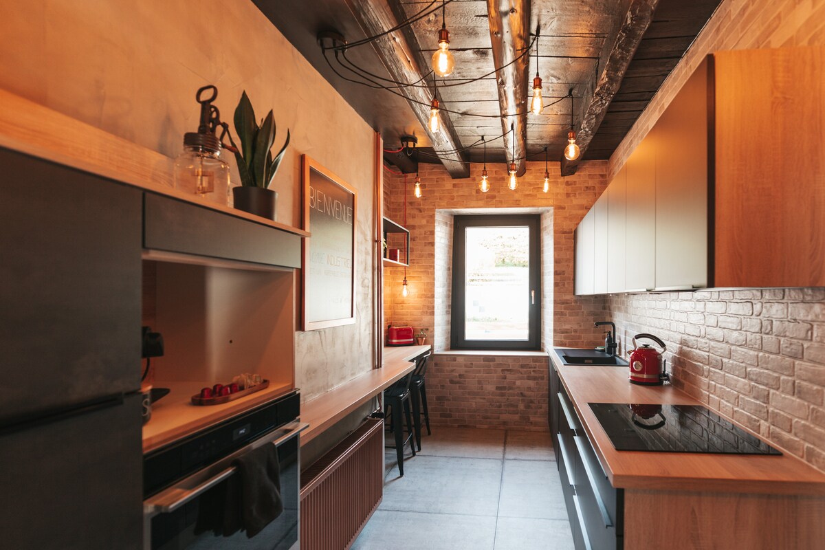 Au Creux de l 'Areuse, tematski stan: Industrial ✈️ Travel 🖤🧳Ukrcajte se i neka vas ovaj dom iznenadi u svom jedinstvenom univerzumu. Savršeno mesto za odmor u blizini mnogih aktivnosti u Val-de-Travers regionu.🌳🏘: 50 metara prelepih planinarenja ⛰🗺700m od železničke stanice 🚉 1 km od via ferrata 🧗🏼♂️2 km od rudnika Asfalt ⛑🔦 3 km od apsintere. 🍾🥂5 km od Gorges de l 'Areuse 🏞7 km od Creux du Van 📸🇨🇭23 km od grada Neuchâtel🏢🌃