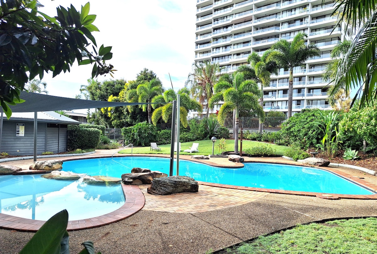 Dobro došli u Paradise Gardens! Potpuno samostalno, uživaćete u mnogim sadržajima odmarališta, uključujući bazen u laguni sa udobnim ležaljkama za sunčanje, grijani spa centar, teretanu, saunu i teniski teren. ***BESPLATAN NEOGRANIČEN WIFI** BESPLATAN REZERVISANI PARKING - visina podruma 2,040 m Ovaj stan otvorenog tipa je nedavno renoviran sa svim udobnostima. Idealno za parove, porodice i poslovne putnike. Skladište za prtljag je dostupno u odmaralištu Q1 (udaljeno samo 130 m), pretražite Stasher.