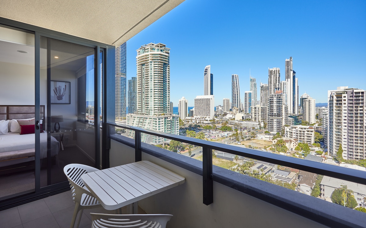 Uživajte u luksuznom boravku u našem zapanjujućem stanu Circle On Cavil. Nalazi se na 41. spratu sa neverovatnim pogledom od 180 stepeni preko okeana i zaleđa. Nalazi se u centru svih prodavnica, plaža i avenije Cavil. Opustite se i uživajte u najboljem pogledu na svoj privatni balkon. Potpuno opremljena kuhinja, luksuzno spa kupatilo, dnevna soba je opremljena King namještajem. Obe spavaće sobe su opremljene kvalitetnim dušecima na vrhu jastuka. Prošetajte do plaže Nije potreban automobil - uhvatite tramvaj za Broadbeach ili autobusom do svih zabavnih parkova.