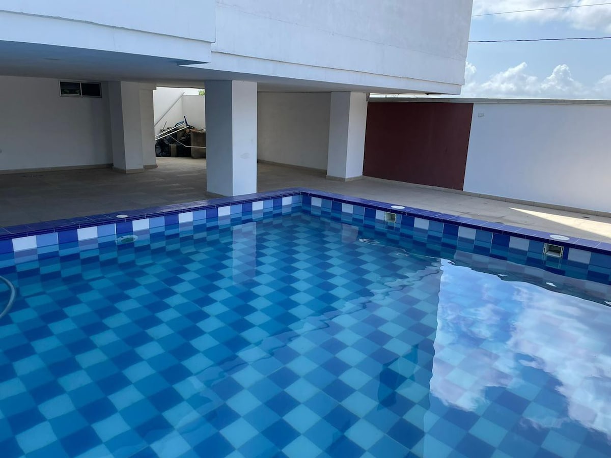 Moderan stan koji se nalazi u jednoj od najekskluzivnijih četvrti u Barankili. *Fleksibilni uslovi dolaska i odlaska *1 spavaća soba s bračnim krevetom i klima-uređajem. *Dnevni boravak sa kaučem i klima-uređajem. *Potpuno opremljena kuhinja sa priborom, osnovnim aparatima i mašinom za pranje veša. *Bazen, sauna, tursko kupatilo i terasa na krovu. *Smartfit teretana u blizini. *Besplatan privatni parking. *U blizini trgovačkih centara VIVA i Buenavista, kao i glavnih klinika i turističkih područja.