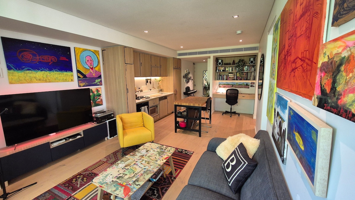 Plutajte iznad panorame Sidneja i luke Sidnej u ovom lijepo uređenom penthausu od 180 kvadratnih metara. To je samostojeća kuća izgrađena na ravnom krovu, na najboljoj lokaciji u Sidneju. Slijećete u srce Sidneja sa restoranima, kafićima, barovima, muzejima, parkovima, pa čak i Operom i turističkim atrakcijama na pragu. Napunite baterije , premotajte i osjećajte se kao kod kuće u ovom jedinstvenom australijskom dizajnerskom smještaju s prostranim i luksuznim enterijerom, visokim plafonima i detaljima australijske umjetnosti.