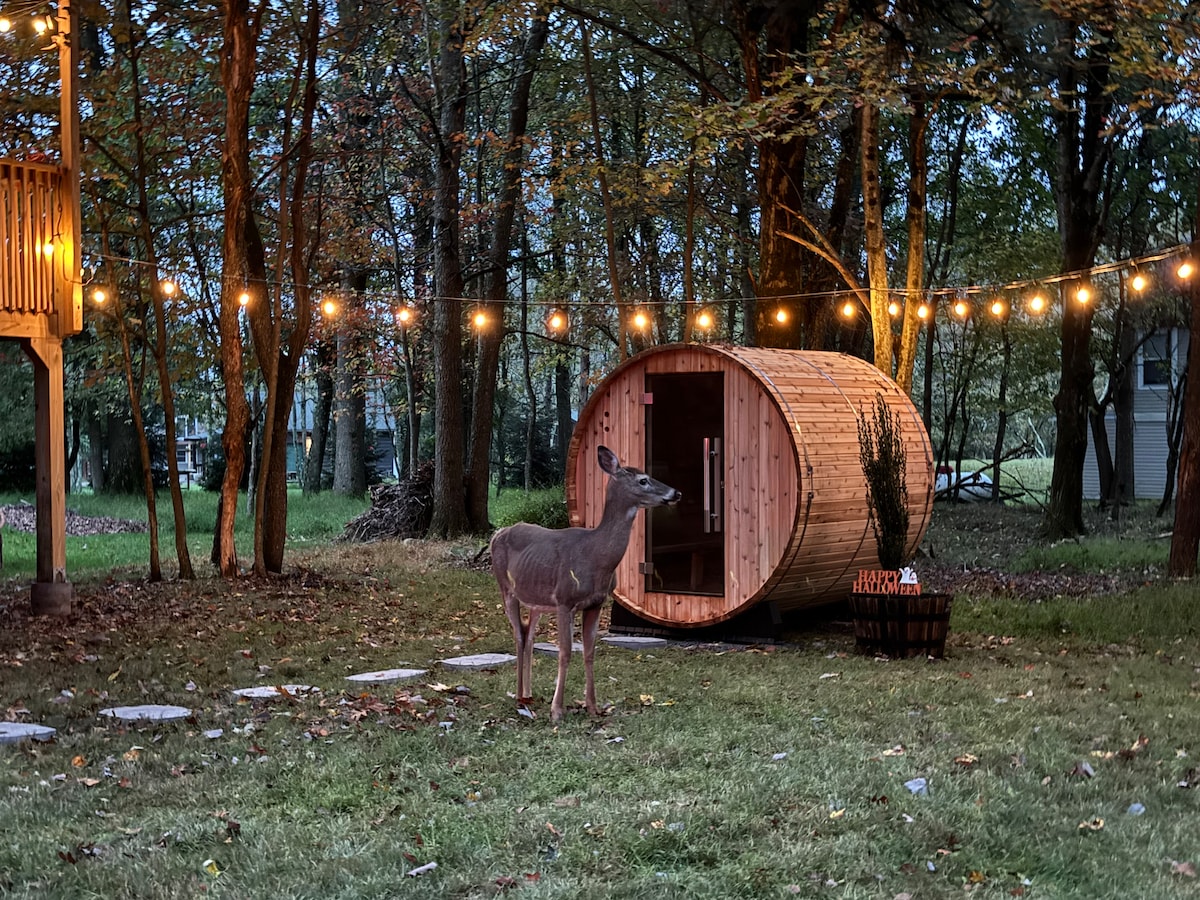 Udobna planinska kuća Pocono, hidromasažna kada, sauna i igralište