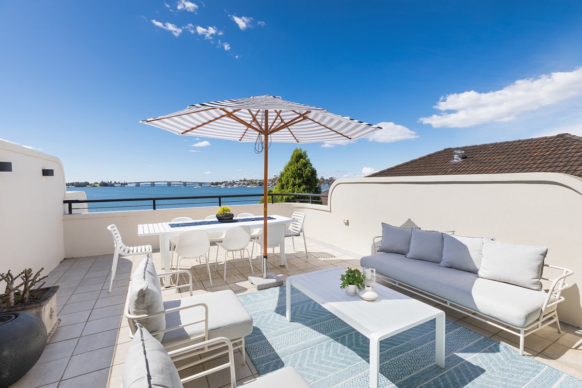 Elegantan četverosoban stan (četiri kupatila) sa dizajnerskim namještajem i panoramskim pogledom na vodu. Potpuno samostalno sa sopstvenim ulazom sa dve spavaće sobe veličine kralja (jedan kralj se deli na dva bračna kreveta) i dve spavaće sobe veličine kraljice pogodne za spavanje do osam ljudi. Kratka šetnja do kafića, restorana i tržnih centara. Praktično za javni prevoz, uključujući željezničke stanice Hurstville i Miranda. Kao što se vidi u 11. epizodi sezone „Udata na prvi pogled”