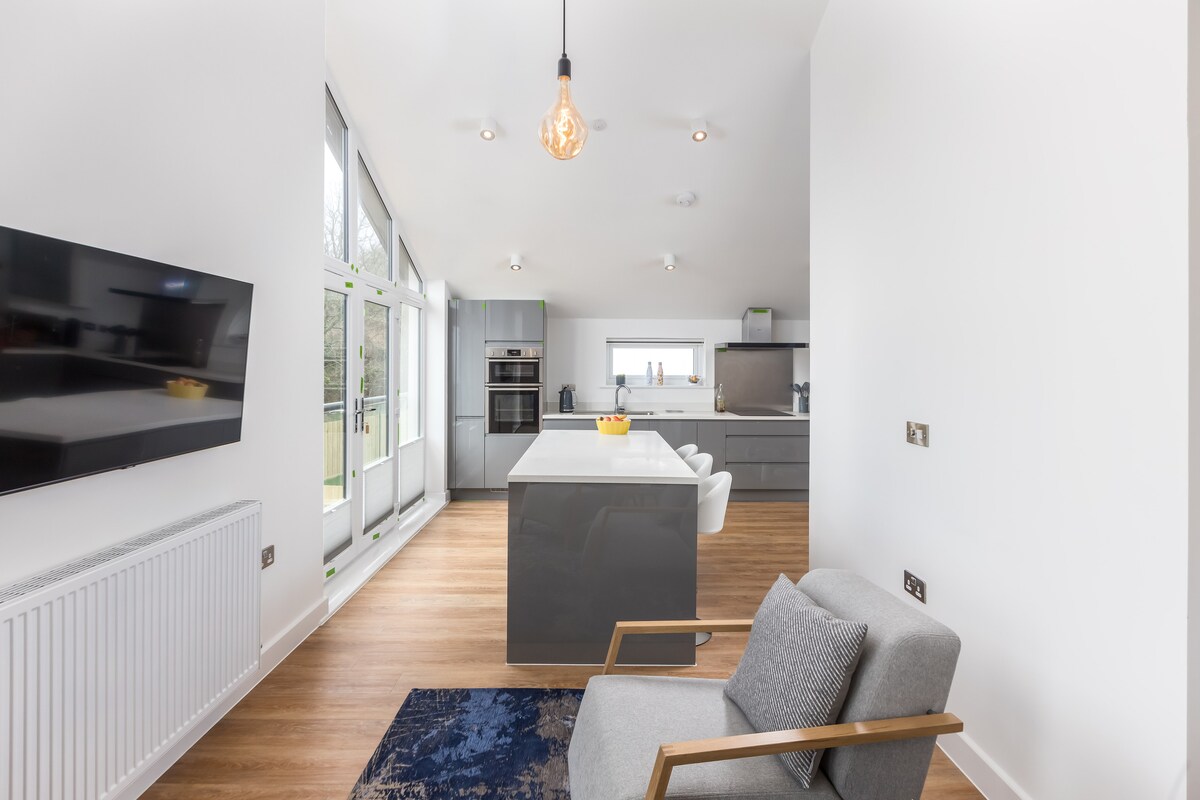Uživajte u luksuznom boravku sa zadivljujućim pogledom na ovaj skriveni dragulj doma u šarmantnom i istorijskom gradu Peninu, odmah pored Falmuta. Uživajte u predivnom panoramskom pogledu iz udobnosti kreveta i opustite se u raskošnom kupatilu opremljenom tušem s vodopadom. Objekat ima prostranu, potpuno opremljenu savremenu kuhinju, elegantnu dnevnu sobu, punjač za električna vozila i terasu za miran i opušten doživljaj. Idealno za parove, porodice i profesionalce.