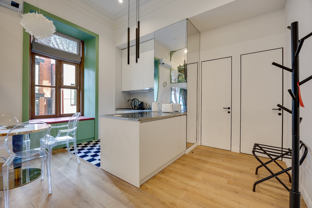 Na raskrsnici tri najstarija okruga, ovaj stan je odlična baza za početak istraživanja najboljih mjesta starog Tbilisija! Legendarni kvart zadržao je svoj prvobitni ukus, nudeći tipične barove, kafiće i Art Nouveau arhitekturu. Pješačka udaljenost od glavnih zanimljivih mjesta. Potpuno namješten, uključujući besplatan Wi-Fi i kablovsku televiziju. Doživite zaista nezaboravan boravak u ovoj očaravajućoj fuziji prošlosti i sadašnjosti. Rezervišite sada i krenite na putovanje kroz vrijeme!