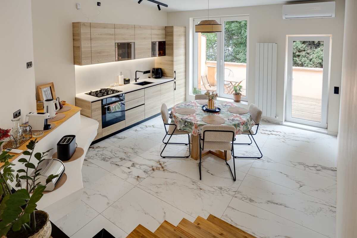 Uživajte u boravku na najboljoj lokaciji starog grada. Na samo nekoliko koraka od Trga slobode i glavnih atrakcija - Besplatan parking - Besplatno ostavljanje prtljaga je dozvoljeno u našem zajedničkom hodniku opremljenom kamerom Boravićete u jednom od sedam potkrovlja koje se nalaze na gornja 3 sprata zgrade sa 11 spratova sa ogromnom terasom i panoramskim pogledom Visoki plafoni i mezanin čine potkrovlje prostranim, dok dizajn sa industrijskim detaljima stvara moderno okruženje. Opremljen svim neophodnim sadržajima