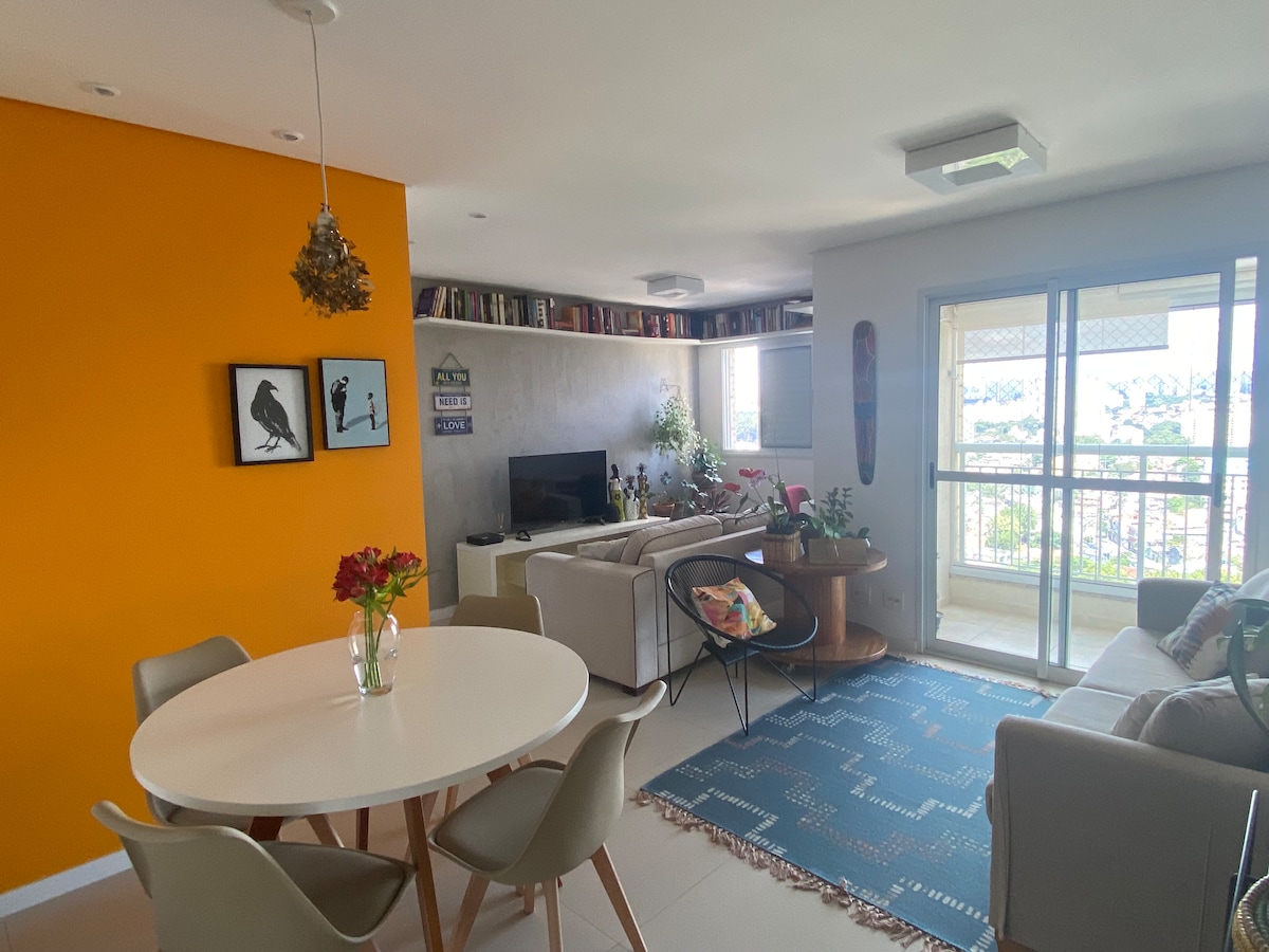 Apê Modern in the heart of Campo Limpo, in the South Zone of São Paulo, very spacious, has two suites, one with a closet, bathroom with two shower and two sink, ideal for family, close to everything: - 50 metara od autobuske stanice Campo Limpo; - 50 metara od Mekdonaldsa; - 20 metara od metroa; -100 metara Drograria São Paulo/Posto Ipiranga; -150 metara od Habibija Napomene: Apê je u blizini glavnog puta, čuje se buka sa lokacije, a zgrada takođe nema lift (3ro Andar).