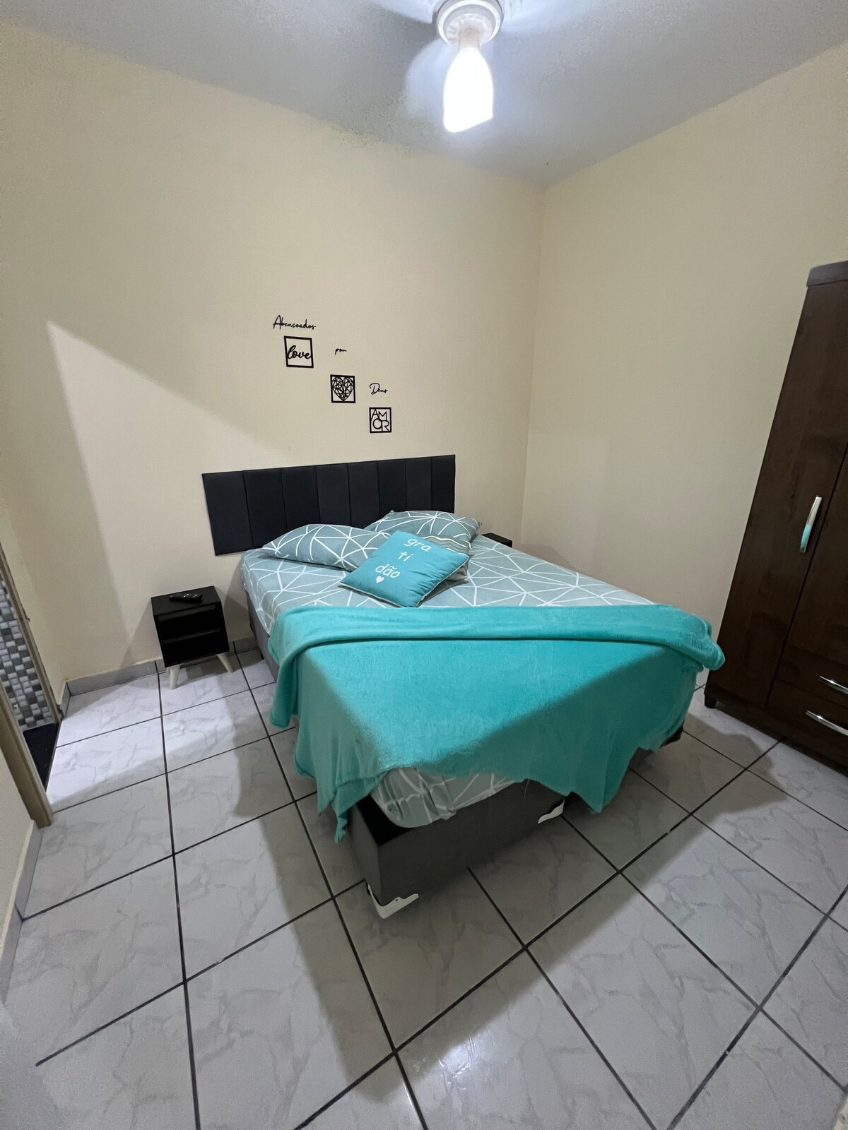 Gostinjska kuća površine 40m² i svom osnovnom opremom koja vam je potrebna za ugodan boravak. Velika soba sa bračnim krevetom, bez zvuka, garderobom i digitalnim pametnim TV-om; kupatilo sa električnim tušem; kuhinja sa plinskim šporetom, mikrotalasnom rernom i priborom; soba američkog tipa u kojoj možete da koristite za obroke, pa čak i za posao. Nema garažu. Udaljeni smo 1,4 km od autoputa régis bittencourt, obližnjih pijaca i 2,5 km od tržnog centra Taboão.