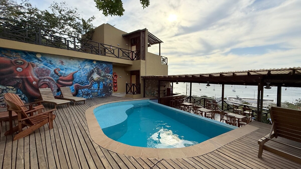 Uživajte u boravku u Tagangi sa predivnim pogledom na zaliv okružen prirodom. Stan na prvom spratu sa privatnim kupatilom, kuhinjom, dnevnim boravkom i klima-uređajem, veoma prostran i izuzetno tih, imamo zajedničku terasu na gornjem spratu sa pogledom. (Soba nema direktan pogled na more) Opustite se u ovom mirnom mjestu udaljenom od buke i 500 metara od plaže, gdje možete uživati u doručku sa odličnim pogledom na okean.