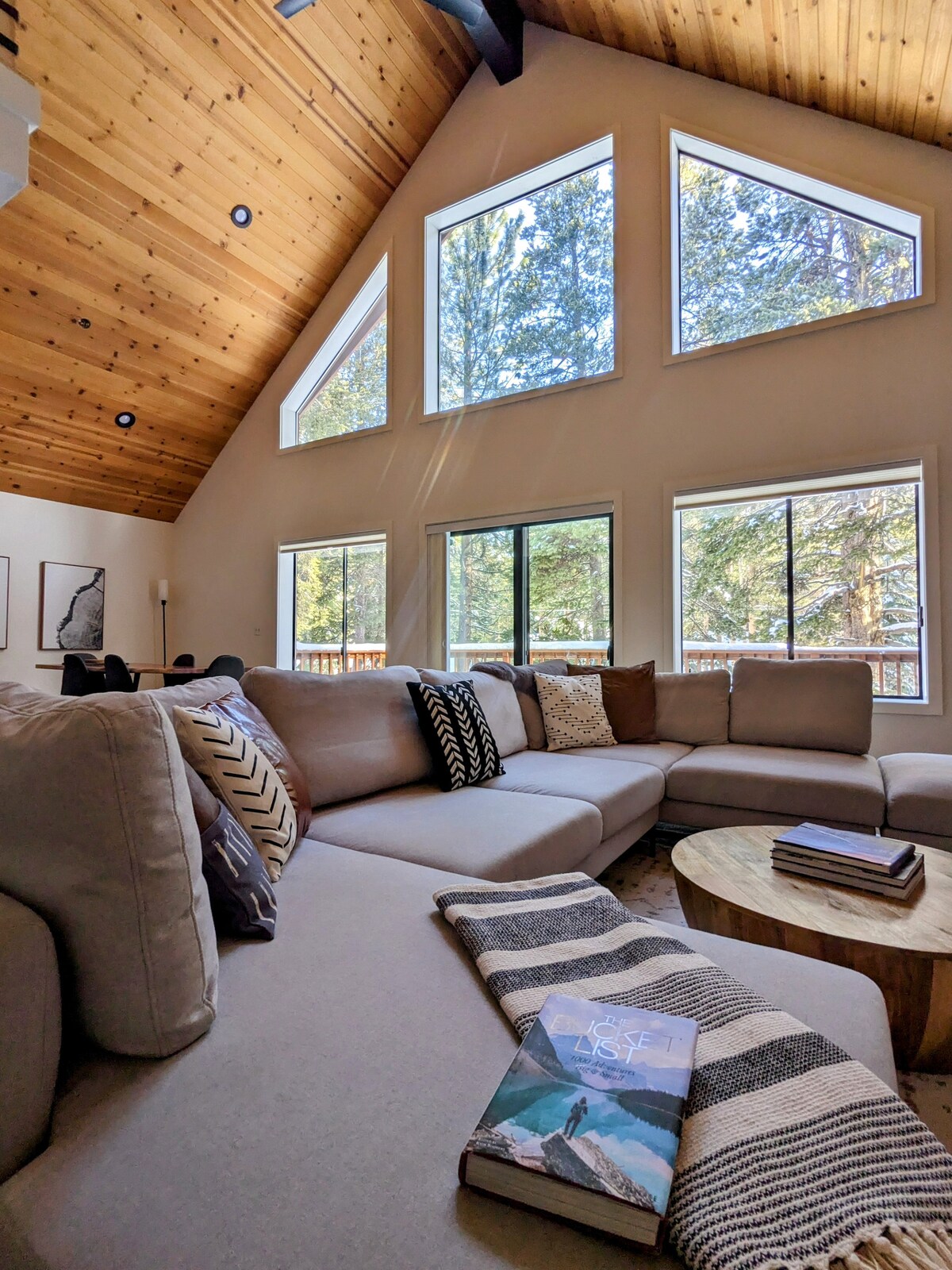 Lovely 3BR Cabin w/ Private DeckTruckee 8 guests 3 bedrooms 6 beds 2 baths Located a quick 15 minutes from downtown Truckee, this lovely 3BR/2BA cabin affords the perfect Tahoe getaway. Warm-up by the wood-burning fireplace, relax on the spacious deck, or play a round of foosball in the loft. Sleeps 8. PROPERTY OVERVIEW An open floor plan with vaulted ceilings, hardwood floors, and modern mountain decor creates a welcoming vibe, with an abundance of indoor and outdoor space.
