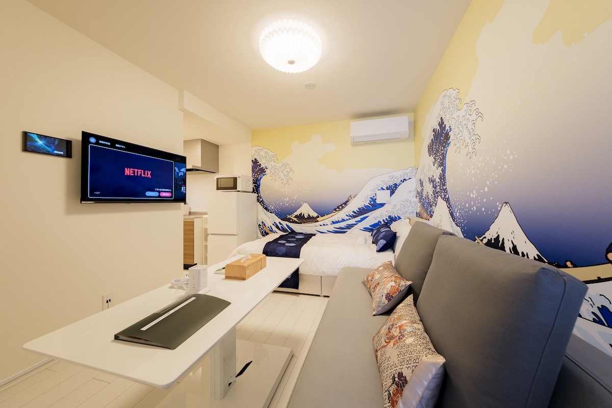 [13 minuta hoda od Ikebukure] Apartmanski hotel ukrašen Hokusajovim ukijo-e slikama | Kuhinja, veš mašina i mašina za sušenje veša
