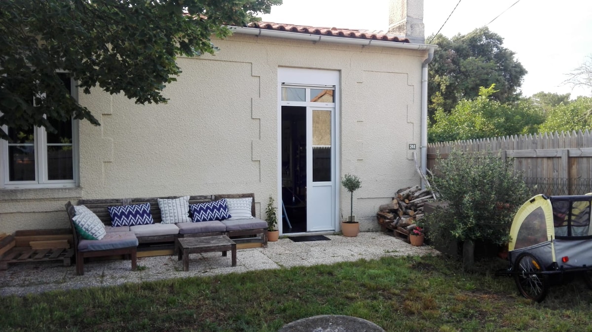 Vrlo lepa kuća u blizini okeana i ušća Gironde. Nalazi se u šumovitoj bašti koja ima pravu staru prikolicu pretvorenu u dodatnu sobu, koja može da primi 2 dodatna gosta. PRIKOLICA SE NUDI SAMO OD MAJA DO SEPTEMBRA. U blizini je tržnica, luke i svih prodavnica. Vikend smeštaj je dostupan na zahtev.