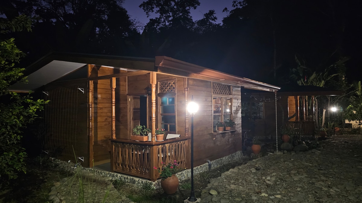 Naša šarmantna garsonjera sa potkrovljem za spavanje nalazi se na 15 minuta hoda i 5 minuta vožnje automobilom od prelepog nacionalnog parka Kahuita i sela Kahuita. Kućica ima opremljenu kuhinju, privatno kupatilo i tuš sa toplom vodom. Na nekoliko koraka od prednje verande kabine nalazi se natkriveno rančo sa trpezarijom i ležaljkama gde možete da se opustite i gledate razigrane posete majmuna urlikaša i Congo majmuna, tukana i povremeno iguana.