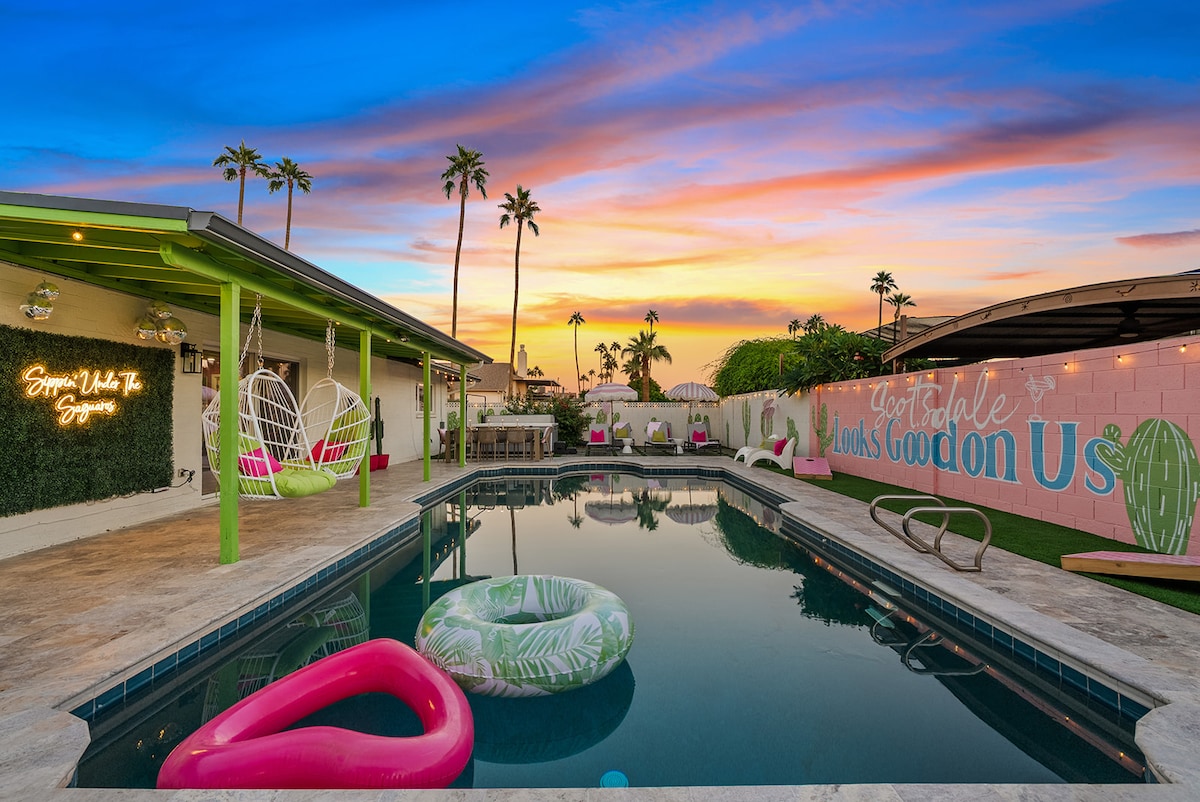 Nova KUĆA! Mart 2024! BESPLATNA GRIJANA POOLIN ZIMA I HIDROMASAŽNA KADA + NULA ČIŠĆENJA! NE PLAĆAJTE GRIJANJE BAZENA NA AIRBNB-U! - POTPUNO NOVA Prelijepa renovirana kuća sa 3 spavaće sobe i dvorištem u stilu odmarališta, samo nekoliko minuta od starog grada Skotsdejla! Besplatan grijani bazen, hidromasažna kada, ognjište, mini golf, stoni tenis, džinovski šah, + najbrži Wi-Fi i pametni televizori! Kuća je u potpunosti opremljena komplementarnim kafićem, roštiljem na otvorenom i najljepšim travnjakom u kojem može da uživa cijela porodica! KABLOVSKE TELEVIZIJE !