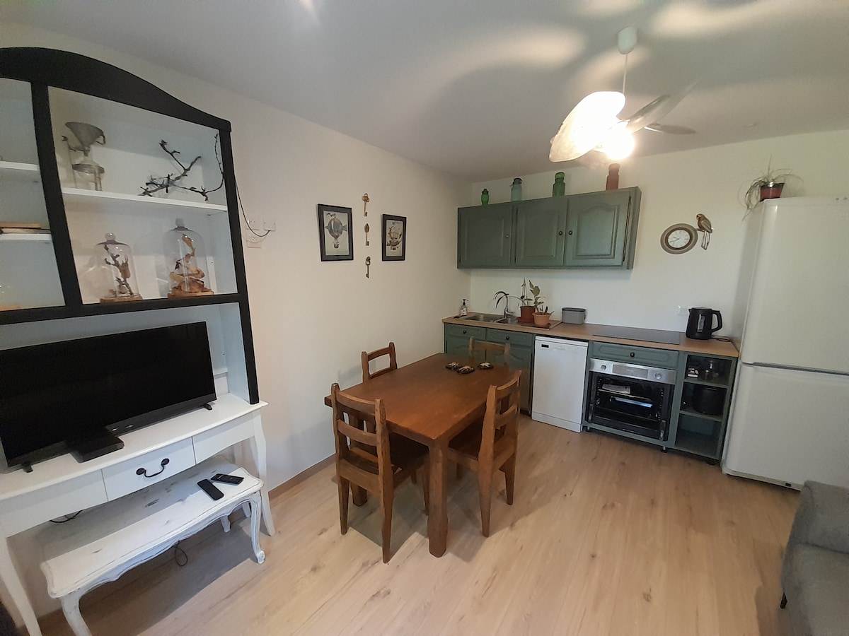 Stan u kući na 1. spratu, za najviše 4 osobe, 2 spavaće sobe (1 veliki krevet i 2 mala kreveta), pristup spoljnim stepenicama, terasa sa pogledom na prirodu. Zatvorena kuhinja (mikrotalasna pećnica, mini rerna, frižider sa zamrzivačem, staklokeramička ploča, toster, kuvalo za vodu, aparat za kafu Tassimo). Odvojeni toalet. Bašta, roštilj. Zatvoreni grejani bazen od 27 stepeni u prizemlju, nedostupan u subotu ujutru od 10:45 do 11:30. Parking sa utičnicom od 220 V. Dobrodošlica: voda, gazirani sok, pivo, kapsule za kafu, čaj, biljni čaj, šećer