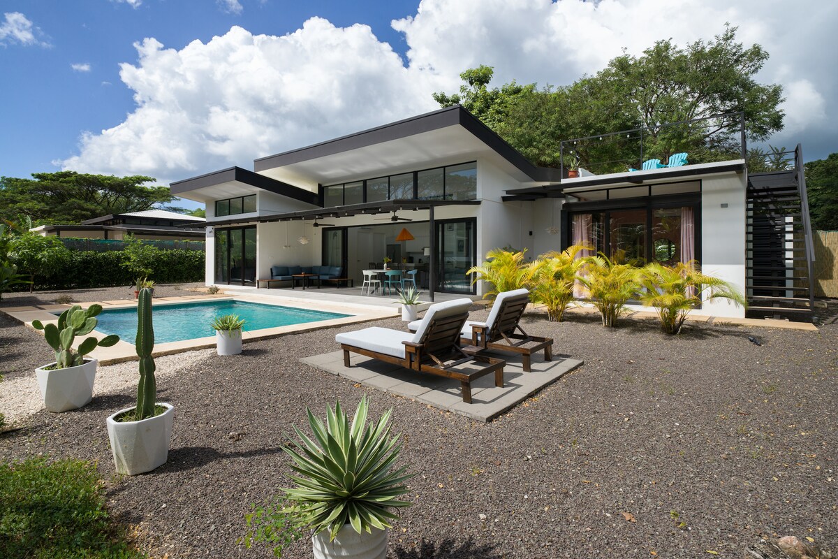 We are a family-owned boutique villa in the heart of Tamarindo, thoughtfully designed for your perfect vacation. Our tropical oasis blends Nordic-inspired modern design with a calm atmosphere. High ceilings, natural light & clean lines create an airy feel. Wood, concrete & white walls bring timeless elegance, and the gardens create a peaceful, natural setting. Your perfect Pura Vida experience!