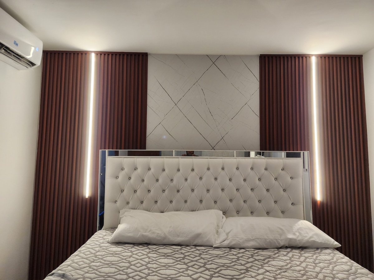 Ovo je prelep ekskluzivni apartman na 12. spratu tornja sa panoramskim pogledom. Koncept je moderan i luksuzan . Ledeni plafoni. Klima uređaj u dnevnoj i spavaćoj sobi nudi prijatnu klimu. Veoma udoban krevet za dobar noćni san . KSNUMKS-Inch TV sa NETFLIK,ViFi,kablovska i drugi sadržaji su uključeni. Nalazi se u jednom od najprestižnijih i najbezbednijih područja. Bez obzira na to da li se radi o poslovnom putovanju ili odmoru za opuštanje, ovo će biti savršeno mesto za odmor.